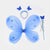 Charming blue butterfly dress-up set for kids. Includes wings, headband, and wand – perfect for parties, playtime, or Halloween!